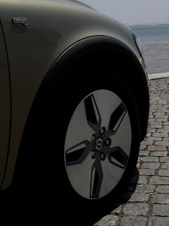 É quase o tratamento que parece ter passado pelo “DRIVe verdadeiro”. As superfícies parecem mais arredondadas, a altura ao solo mais reduzida, mas o verdadeiro artifício, que nos deixa completamente rendidos, são as jantes. Completamente lisas fazendo, lembrar as rodas de contra-relógio nas bicicletas de ciclismo, apenas têm recortadas umas ranhuras para arrefecerem os travões, se fosse possível quase que aposto que seriam completamente lisas, mas como não é, acredito que este seja o layout mais eficiente possível criado pela Volvo.